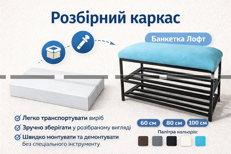 Банкетка довжина 60, 80, 100 см з розбірним каркасом
